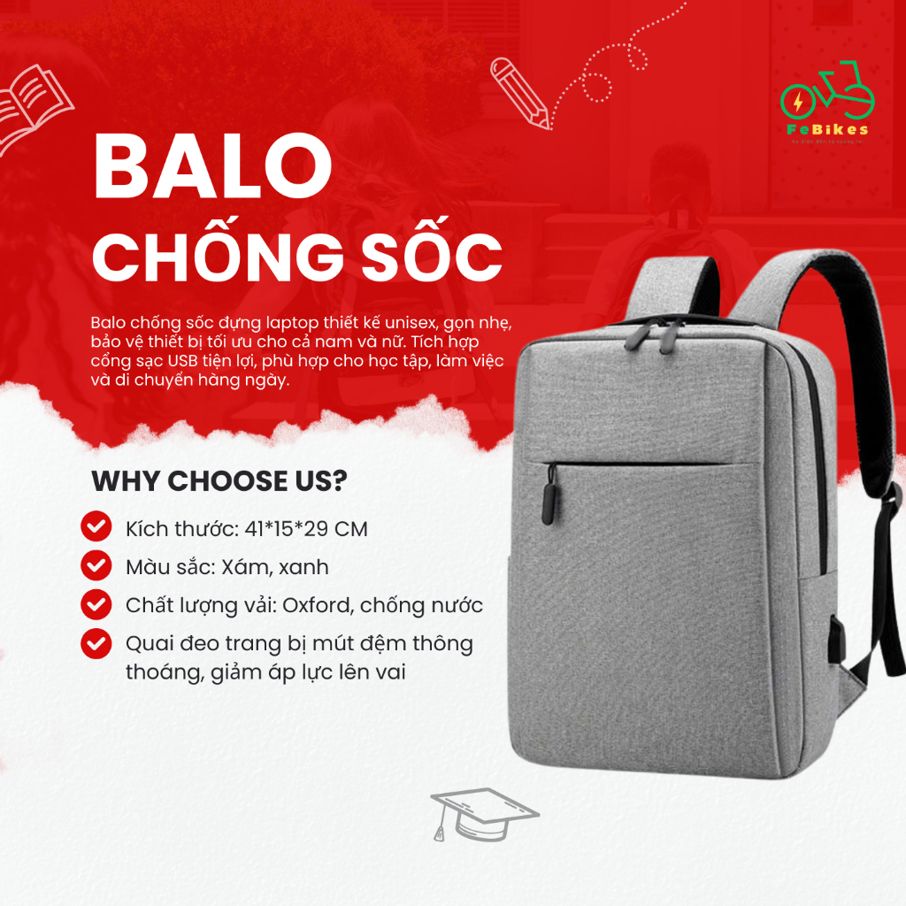 🎒 BALO LAPTOP CHỐNG SỐC – CHỐNG NƯỚC – CÓ CỔNG SẠC USB | DÀNH CHO NAM & NỮ