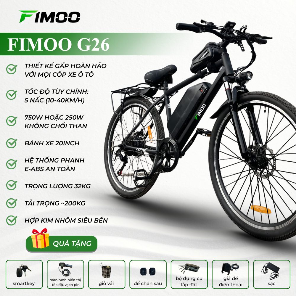 Xe đạp điện trợ lực gấp gọn FIMOO G26 chính hãng nhập khẩu nguyên thùng, thương hiệu Việt với công nghệ cải tiến tối ưu, thiết kế tinh gọn, chinh phục mọi nẻo đường, dễ dàng sử dụng và mang vác.